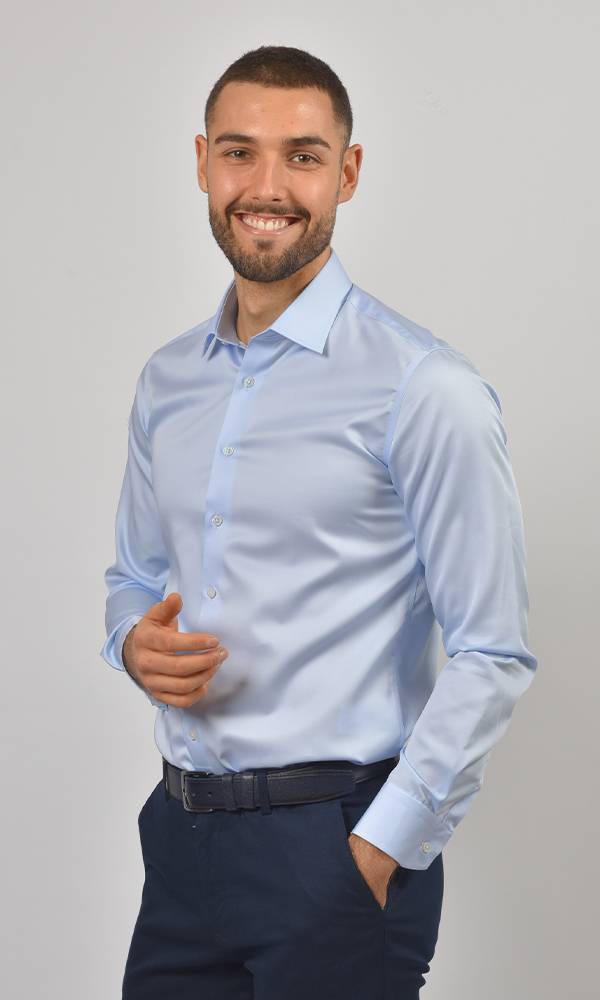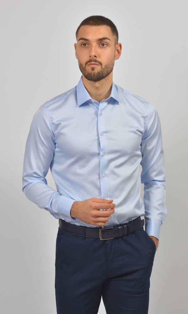 Ova Svetlo Plava Košulja sa Duplim Manžetnama iz kolekcije ATRIUM FASHION donosi spoj prozirne boje i luksuznog satenskog sjaja. Idealna je za formalne dnevne događaje, prolećna venčanja i poslovne prilike, kombinujući svežinu i vrhunsku eleganciju.