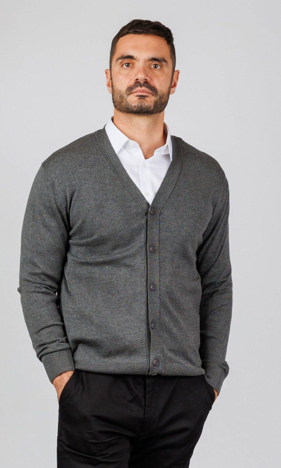 Elegantni muški džemper. V-izrez sa dugmadima, besprekoran kvalitet. Topao i stilizovan model.