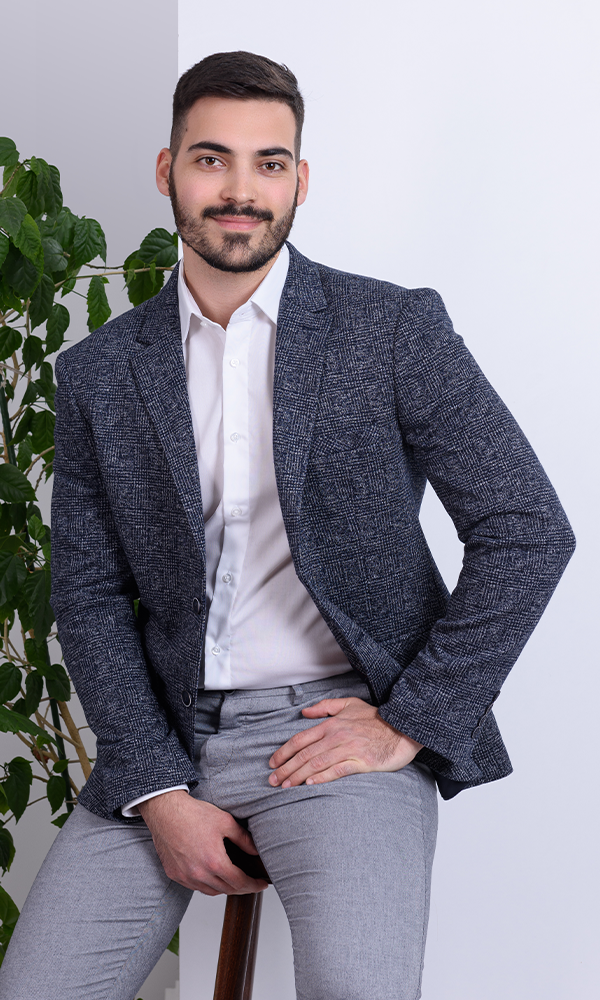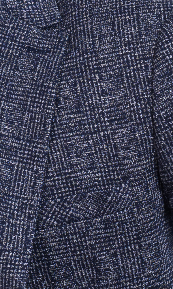 Ovaj Tamno Plavi Teksturirani Sako sa Sitnim Karo Dezenom (Houndstooth/Micro-Check) iz kolekcije ATRIUM FASHION donosi duboku teget boju obogaćenu jasnim, sitnim dezenom u svetlo sivoj boji. Idealan je za jesenje i zimske smart-casual kombinacije, spajajući toplinu i prefinjeni stil.