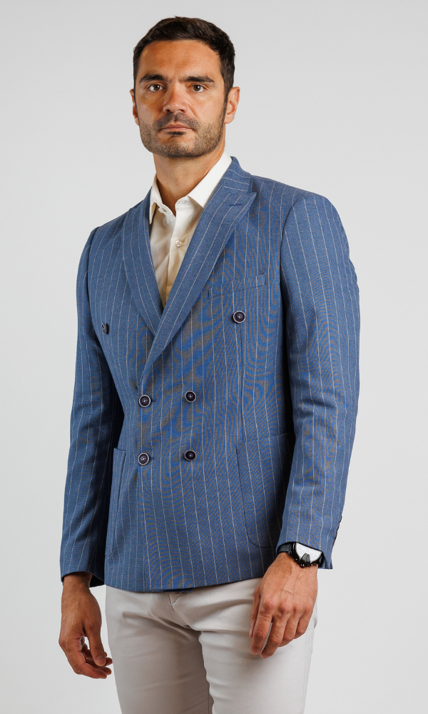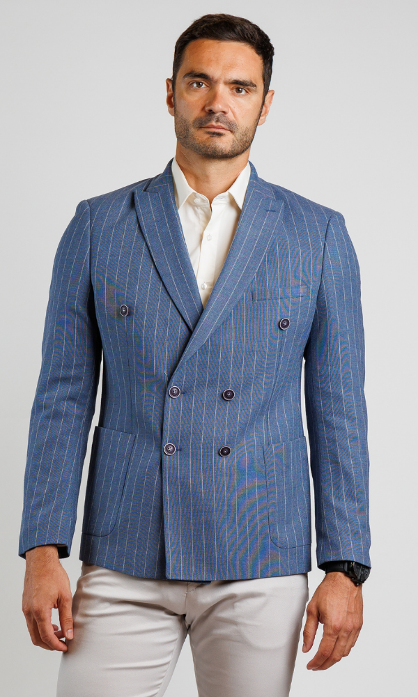 ATRIUM FASHION predstavlja odvažan Slim Fit sako na dvoredno kopčanje u tamno sivoj boji sa diskretnim prugastim dezenom. Ovaj model nudi vrhunsku eleganciju i savršen je za muškarce koji žele da se istaknu sofisticiranim, ali trendi izgledom. Odlično se kombinuje sa chino pantalonama ili klasičnim pantalonama.